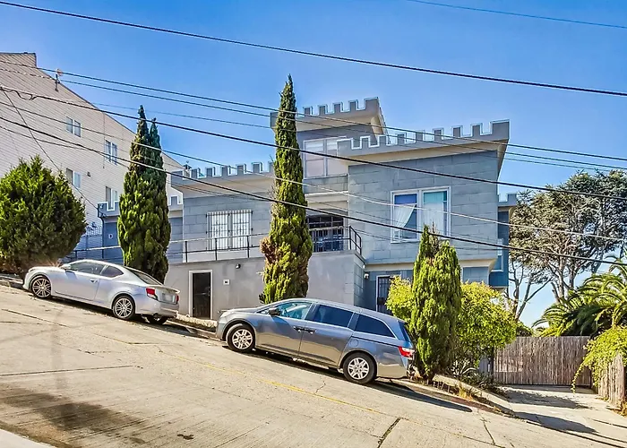 The kitchen amenities at 2Br Castle On The Hill Wviews Villa feature coffee and tea making machines, a fridge, and kitchenware, provided in a dining area. American cuisine is served at Fox and Lion Bread, which is located in close proximity to the property. San Francisco International airport is 20 km from 2Br Castle On The Hill Wviews Villa, and Van Dyke Avenue & Keith Street bus stop is merely 250 metres away.
